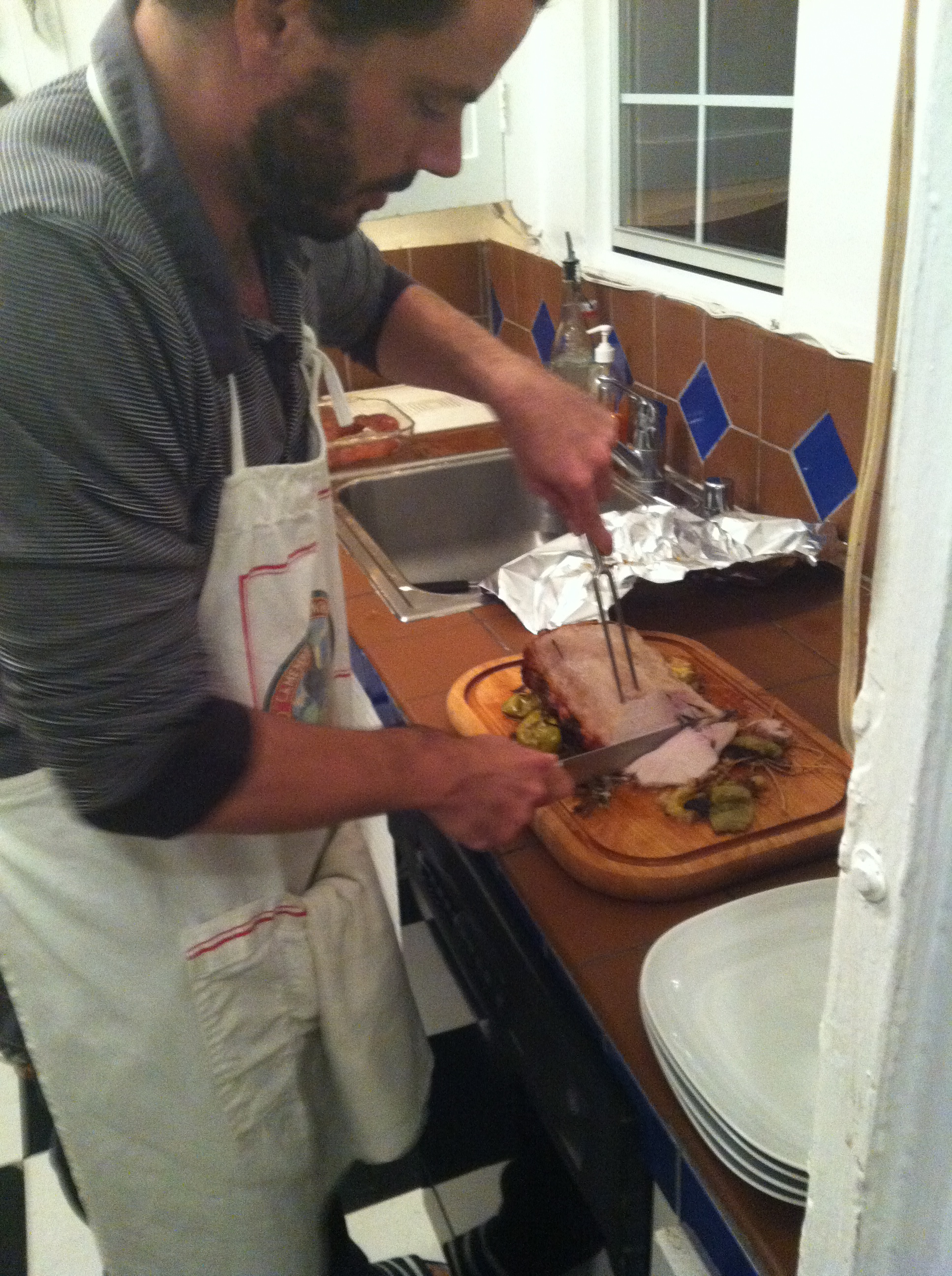The Horanimal himself carving up the pork.