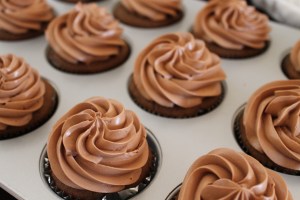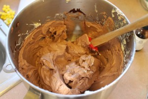 If it doesn’t, bravo! Now add the vanilla and the chocolate, which should be cooled perfectly for adding now that you’ve been doing the butter thing for ages. Et voilá! You should have some of the most delicious frosting on the planet. Use immediately if possible, because when this stuff refrigerates, those eggs make it rock hard. You’ll need to defrost it for at least an hour for it to get to room temperature and useable again.