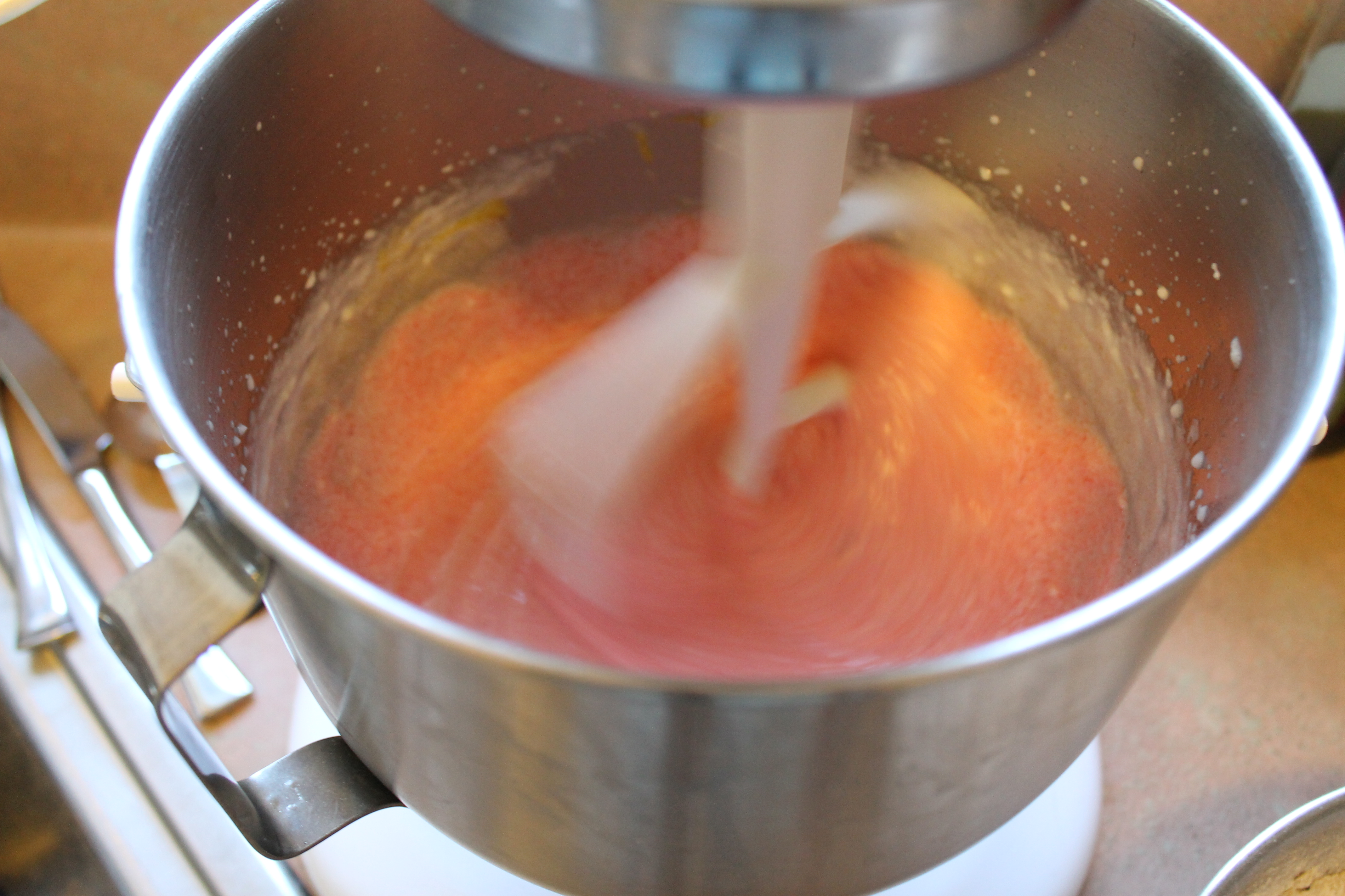Adding the red food coloring. I'll be making pink ones for my niece's birthday next month.
