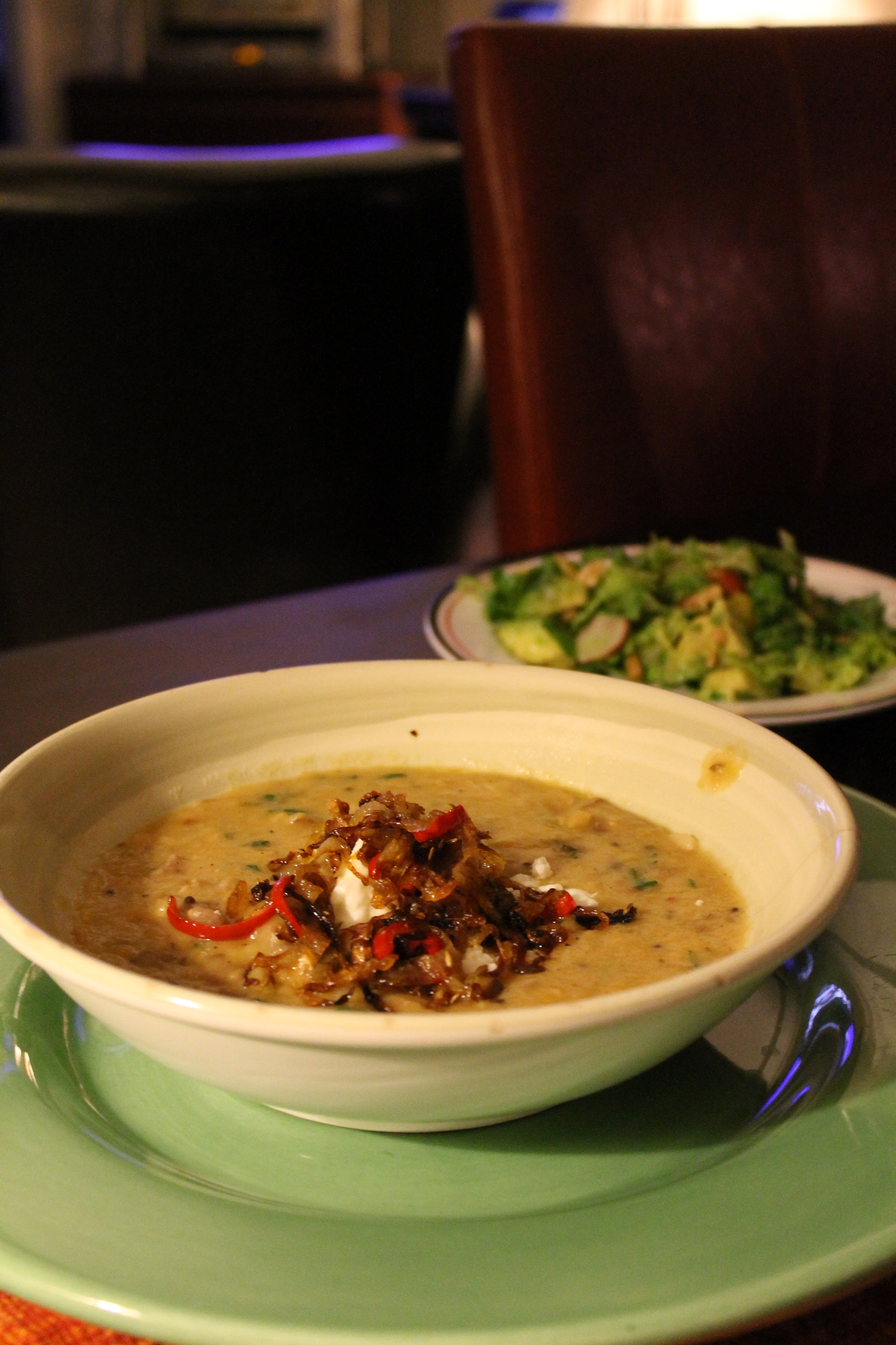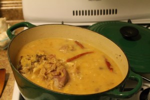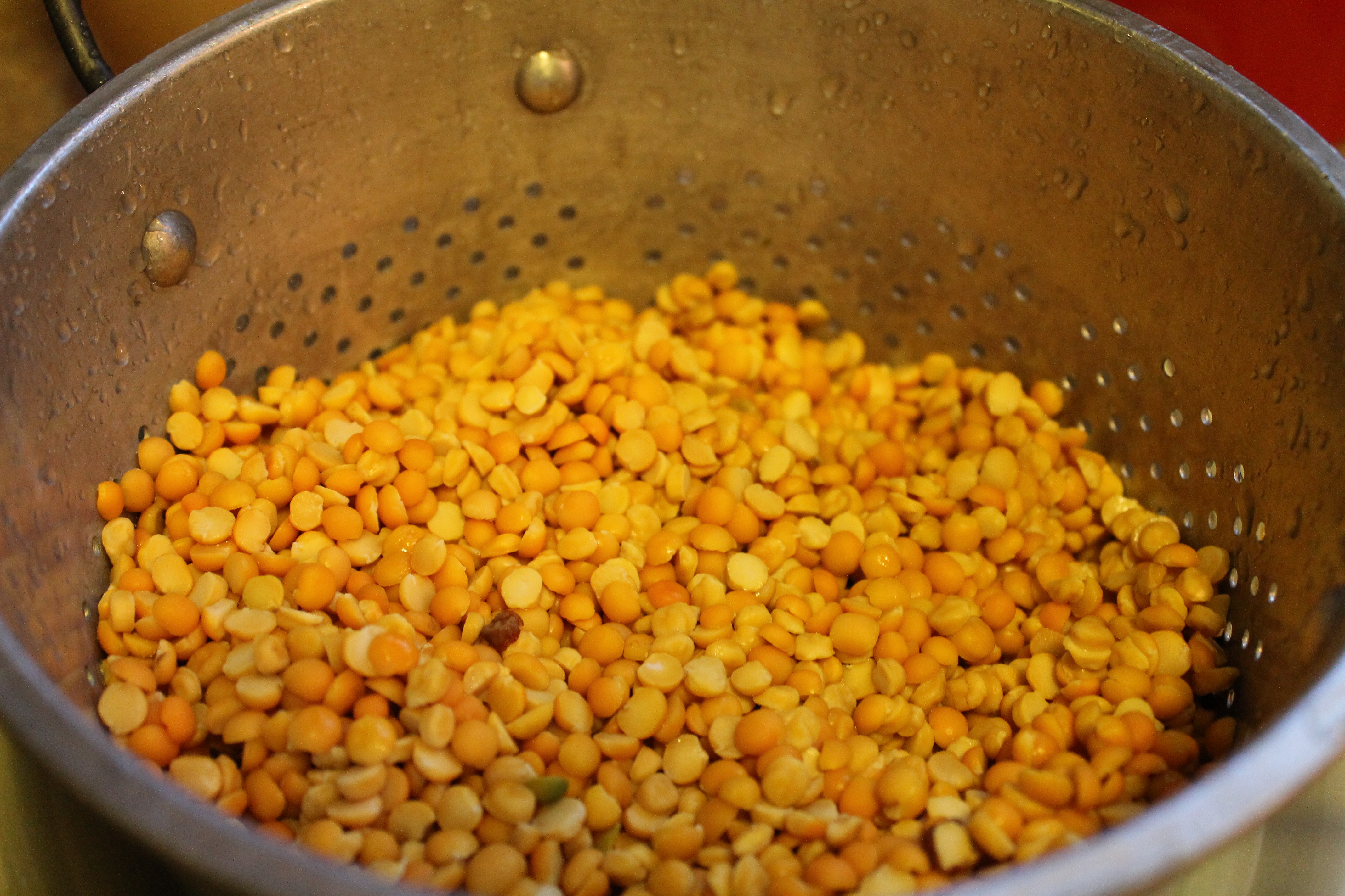 I had half a cup of chana dhal left in the cupboard and a whole bag of yellow split peas, so I figured I’d use both for more texture. I used up Easter’s ham bone that Dad tried to give to the dog, and we decided that she shouldn’t have bones anymore after some research. So into the pot it went along with a lamb shank bone that was hanging out in the freezer.