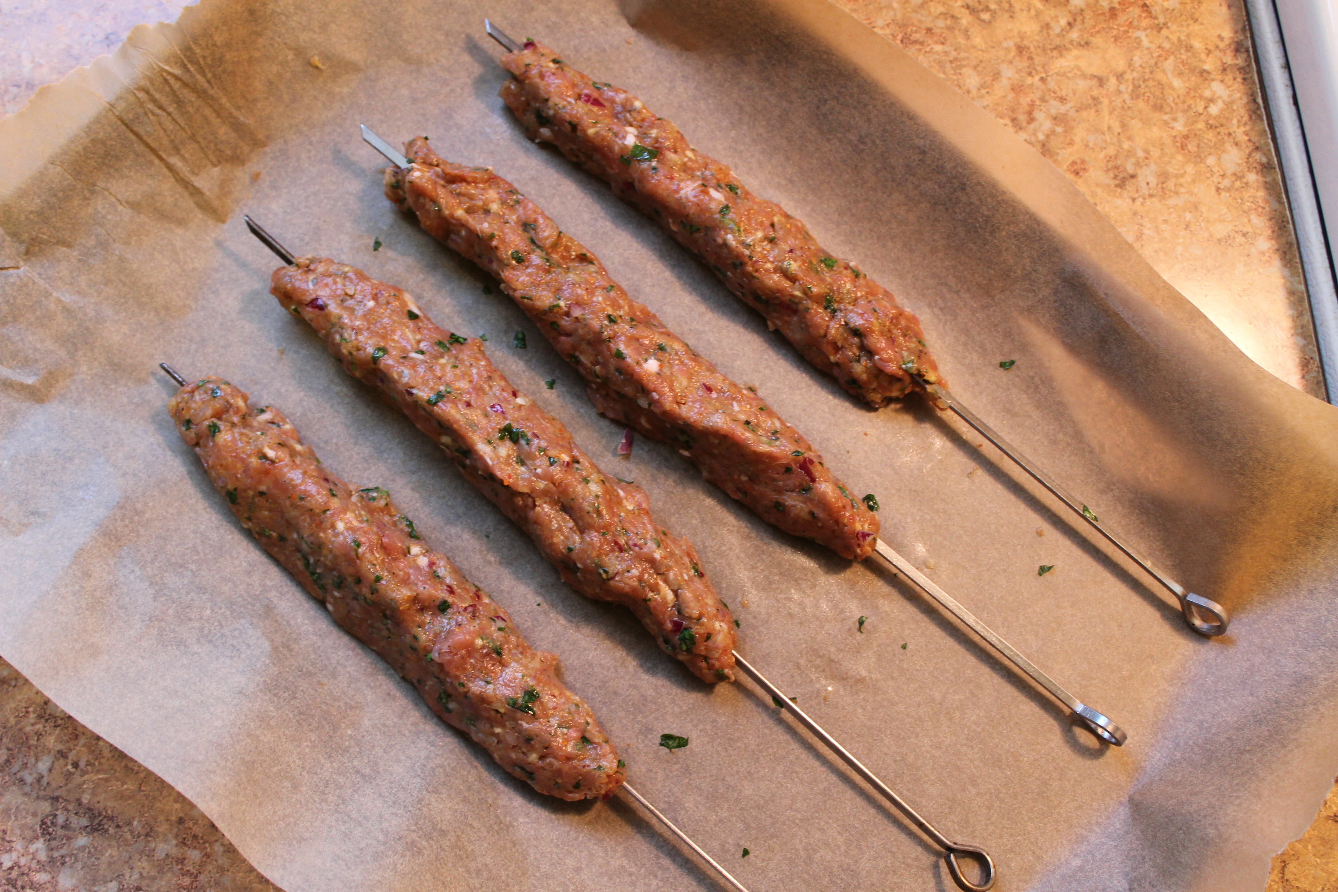 The night before I used the pointy sticks, and there were no injuries to report. These minced-meat-on-a-stick idea came from me wandering around Whole Foods with no clue for dinner. I was not feeling overly creative, and we’d already had chicken twice that week. The Husband doesn’t like lamb too often, I can only eat bison (not beef, as they seem to lie about the “grass fed” part and it kills my stomach), and now we’ve been hearing about radioactive fish I figured he’d not like me bringing home fish either. So, how can I get something on the grill for dinner, I thought?
