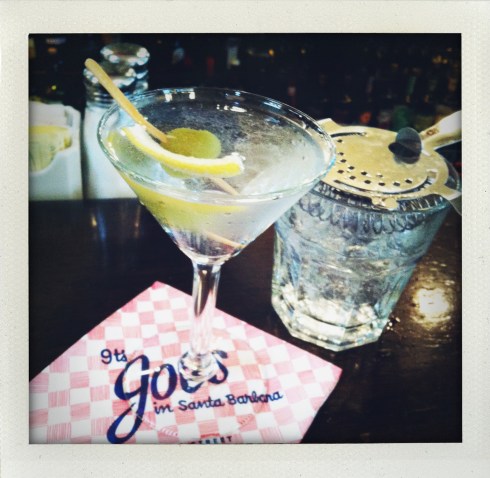 A trip to Santa Barbara is not complete without a martini at Joe’s. Only have one if you can hold your liquor—why? Look at the picture. Beyond the awesome retro checkered napkin and the petite martini glass, see the glass with the cocktail strainer on it? Oh yeah, that’s parts two and three of your martini. Don’t say I didn’t warn you.