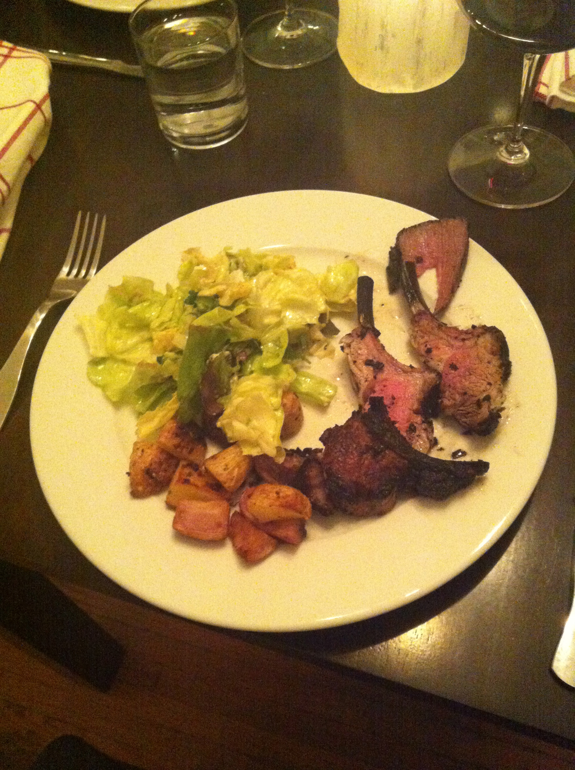 The next day they took pity on us and cooked us two wonderful meals. One was their famous fried eggs a la pimenton with toast and salad for breakfast, and for dinner they whipped up some lamb chops for me and “Fred’s tips” for everyone else—some sort of Sonoma, CA delicacy. To me, it was like beef pretending to be bacon. I could only have one bite, but it was delicious, as was my lamb. These guys fly all over the world for work, so getting them for a whole day and a bit was dee-lightful!