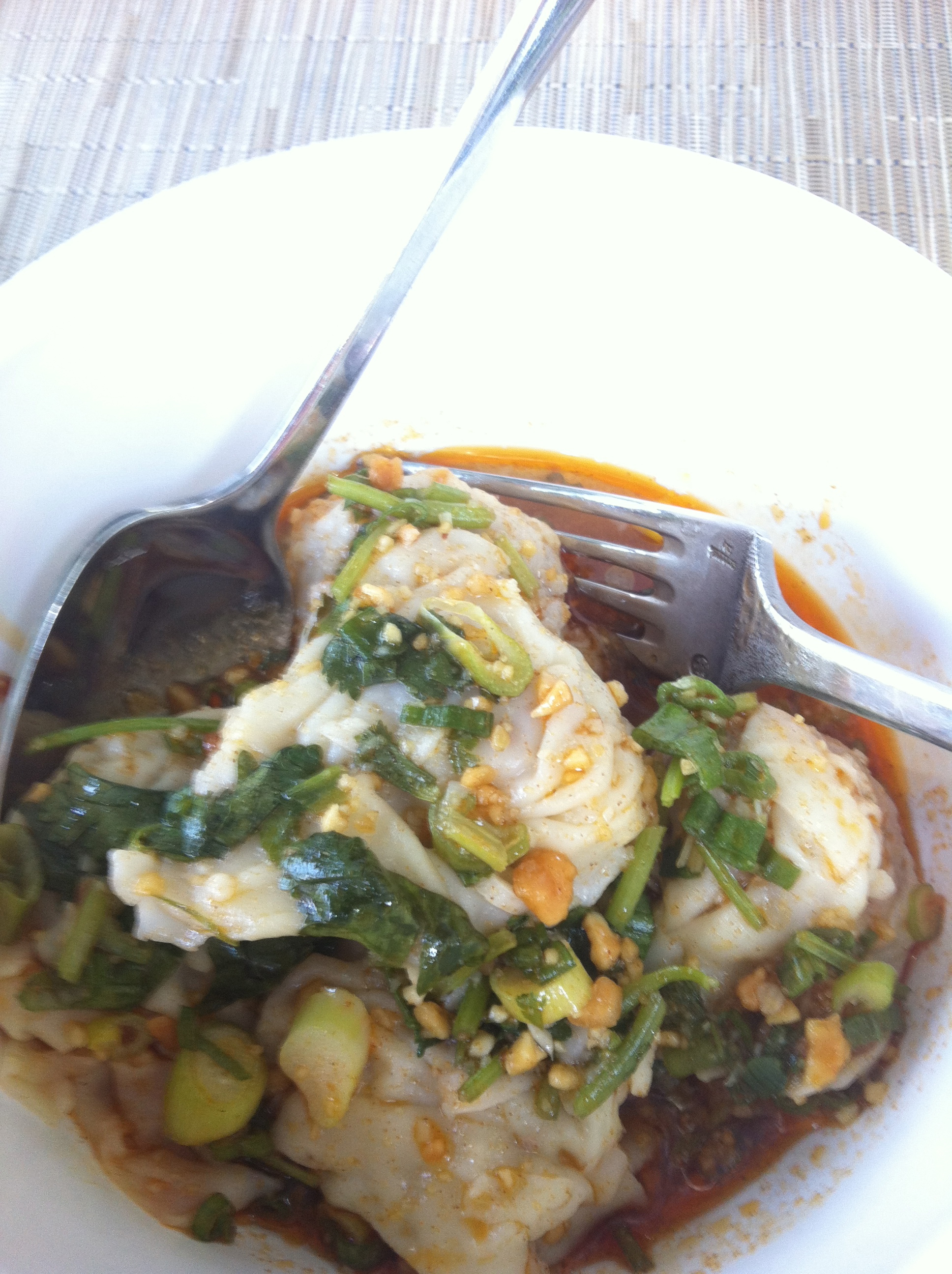 After picking up our leftovers the next morning from C+E and a quick hug goodbye, we raced down the freeway to get back to the four-legged kids. Well, we did make one stop, for the pork dumplings at the very strangely named Guppy House in Irvine. This Taiwanese place has a long menu of great-looking stuff, and I accidentally found out about this place through a business meeting. You get 15 dumplings for about $8, which is crazy for something off the “snack” menu, and the leftovers were met with great joy by The Husband. Hence the stop on the way home. It was worth it.