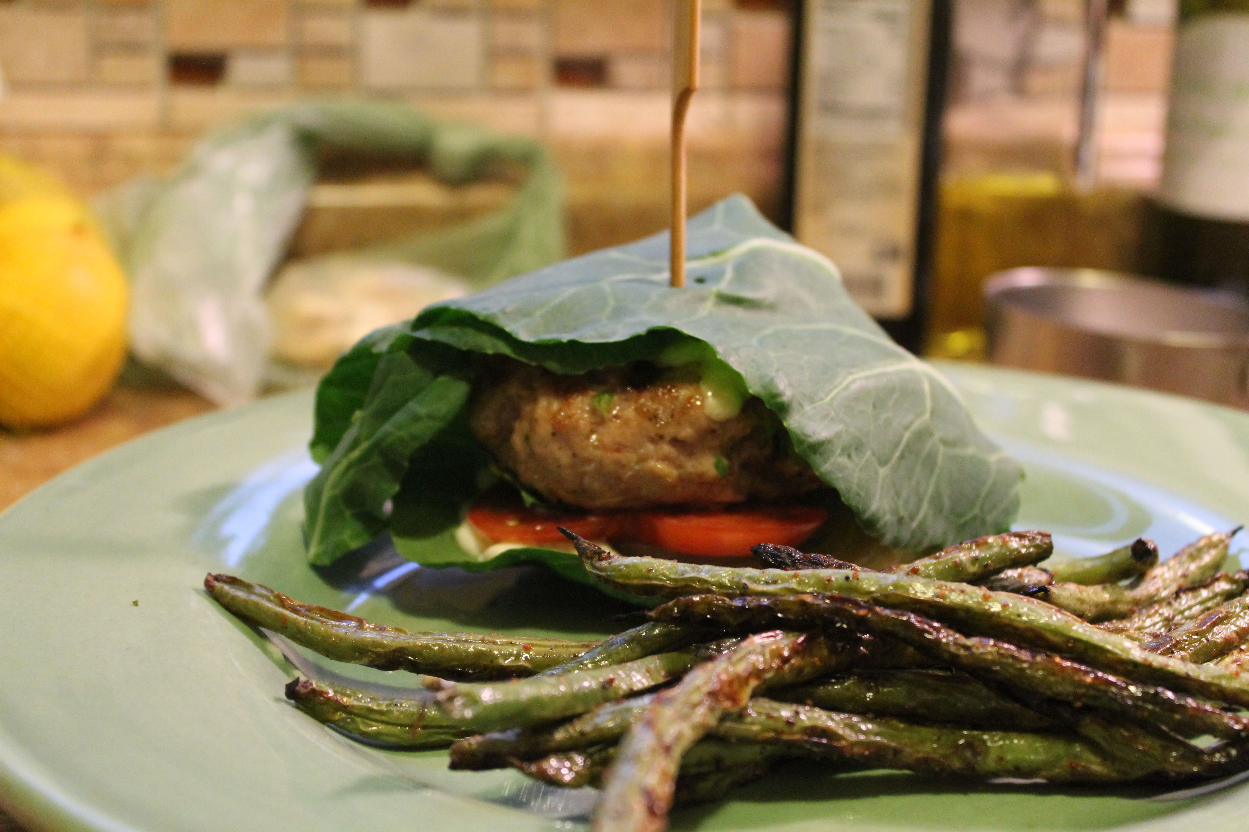 Since my eating habits have been forced to change, that jalapeño-cheddar bun was not going to work for me. Luckily, I follow so many other cooking blogs that when I saw the collard greens in the aisle yesterday, I knew I’d found my bun replacement. And I’m happy to report that I did not miss that bun at all! It was nice to just have the other flavors without the bulk of the bread. Don’t get me wrong, I love bread and always will, but the fact that I can’t have it and loved this replacement made me very happy! Now I can’t wait to figure out other ways to use my collard greens as a wrap.