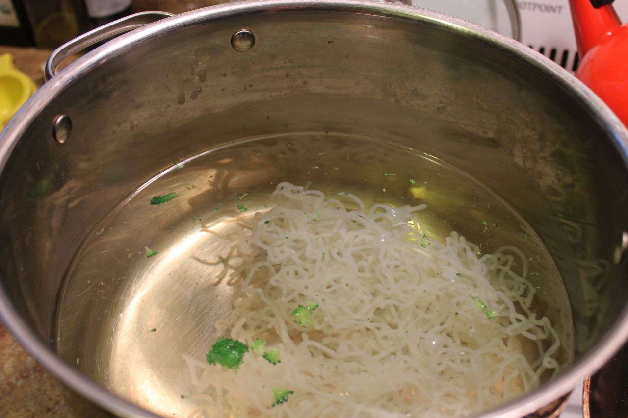 The instructions say to wash the noodles and then boil for 2-3 minutes to “eliminate the distinctive smell”. Okay, so I dump these bad boys into a colander to rinse, and all of a sudden my nostrils are assaulted with an ungodly odor. I swear if you went up to a New York construction worker on a July day, pulled his arm over his head and took a whiff of his armpit, it would smell like these noodles. I can’t make any promises, of course, and I don’t condone this action, but what I’m trying to tell you is that these noodles’ smell almost made me vomit.