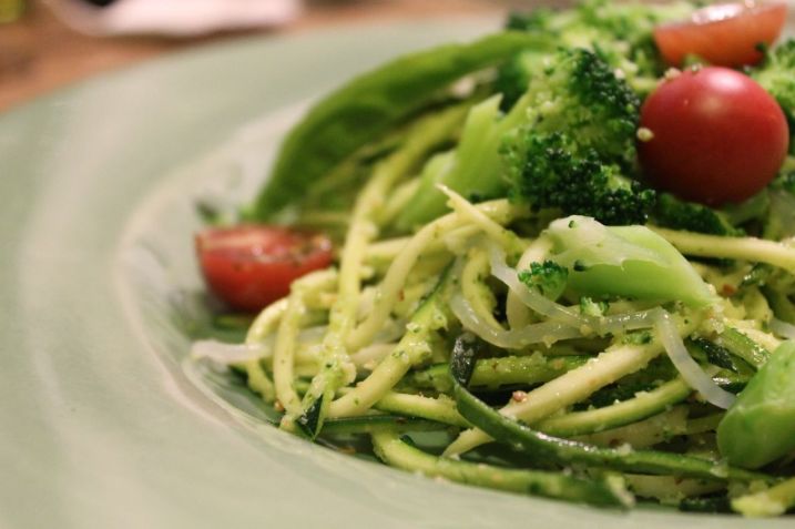 Triple-Green Zucchini Pasta With Broccoli-Arugula Pesto