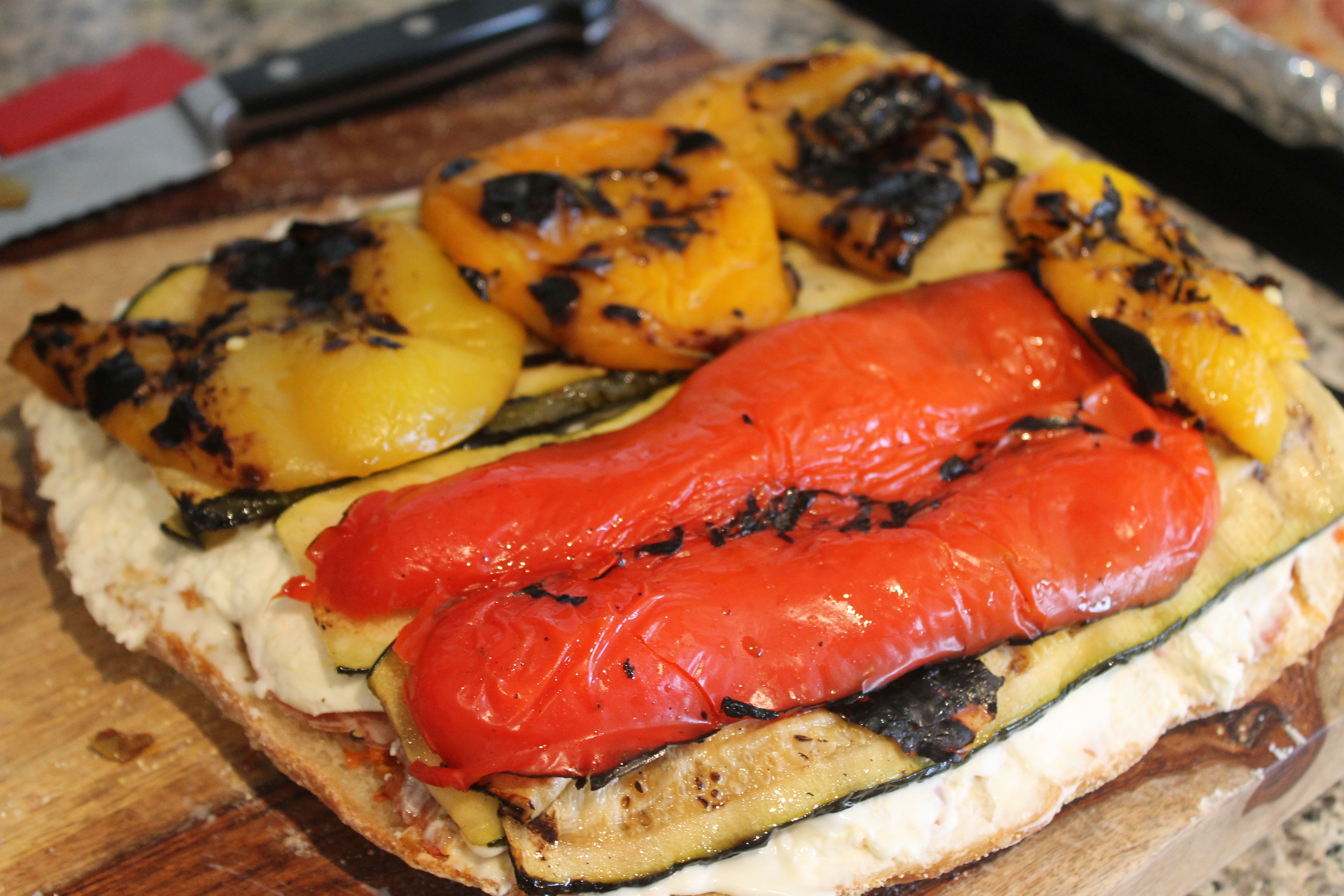 Sandwich05 Sandwich07Start layering your grilled zucchini and eggplant, then the peppers on top of those.